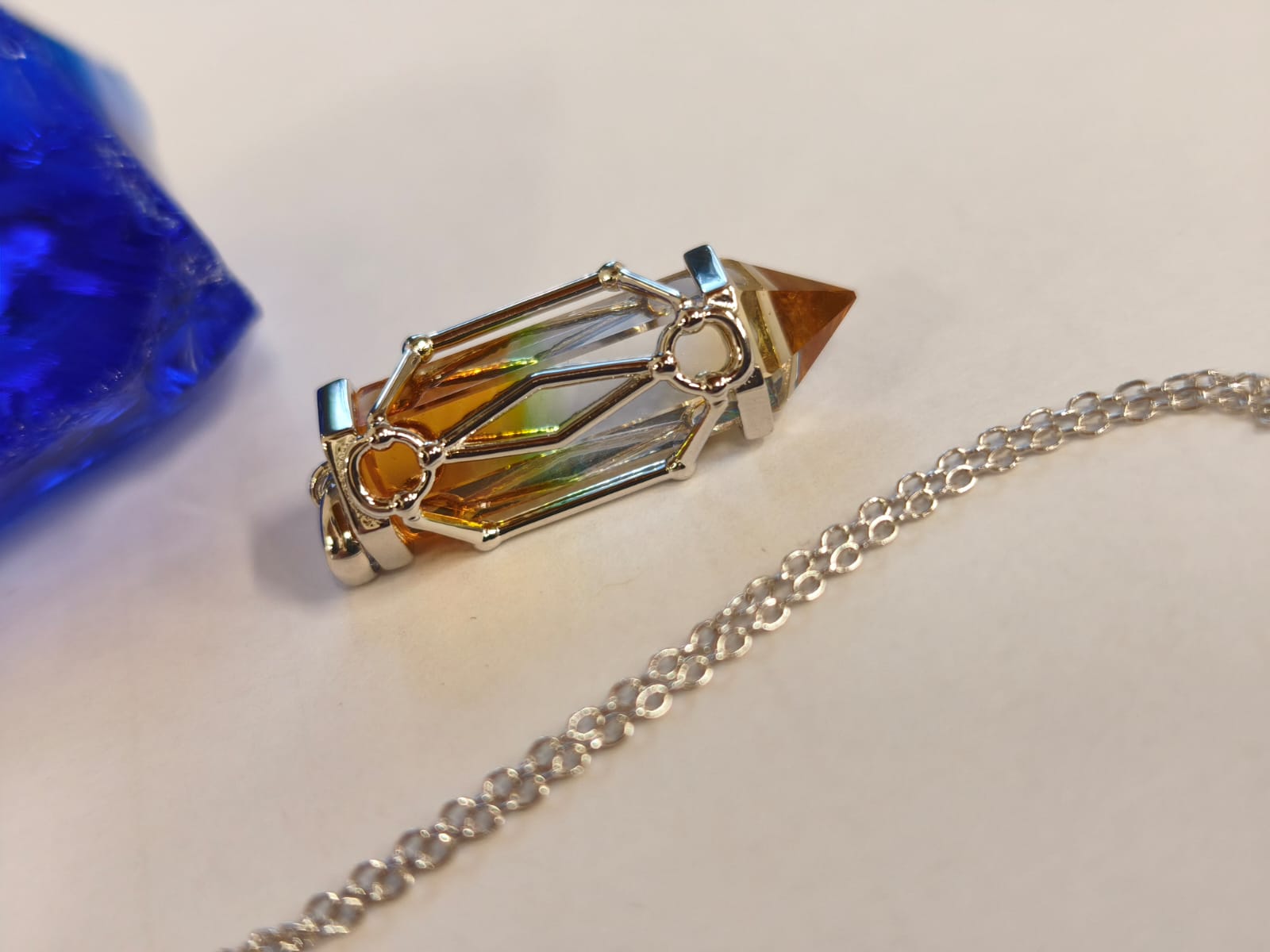 Tento andarkový prívesok nesie svetelnú pamäť vedomia – tiché poznanie, ktoré sa v človeku prebúdza vtedy, keď je pripravený spomenúť si. Každý kus je jedinečný farbou aj vibráciou, no všetky spája schopnosť zosúladiť vnútorný priestor, podporiť jasnosť, pokoj a návrat k vlastnej pravde • Nie je len ozdobou, ale osobným amuletom ~ jemným sprievodcom, ktorý pracuje v súlade s nositeľom a jeho cestou *